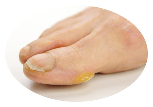 an overgrowth of skin around the affected toe